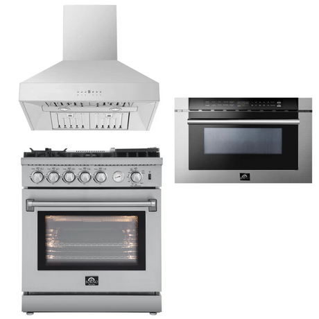 FORNO Appliance Package - 30" Gas Range, 30" Range Hood, Microwave Drawer, AP-FFSGS6276-30-W-3