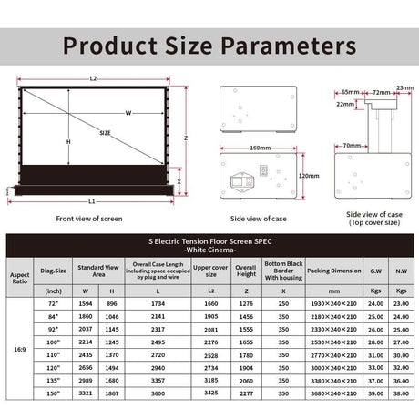VIVIDSTORM S White Cinema Motorized Tension Floor Rising Projector screen– Classic Version