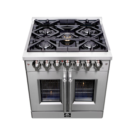 FORNO Massimo 30″ 4.32 cu. ft. Freestanding French Door Dual Fuel Range with 5 Burners, FFSGS6325-30