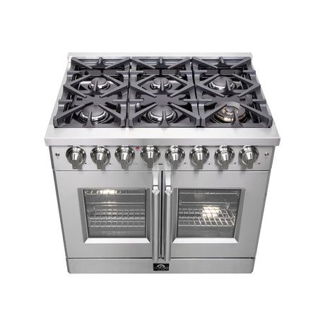 FORNO Massimo 36" 5.36 cu. ft. Freestanding French Door Gas Range with 6 Burners, FFSGS6439-36