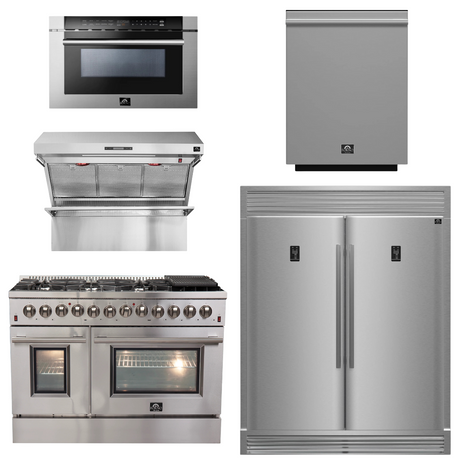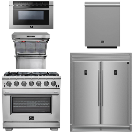 FORNO Package - 36" Dual Fuel Range, Range Hood, Refrigerator, Microwave, Dishwasher