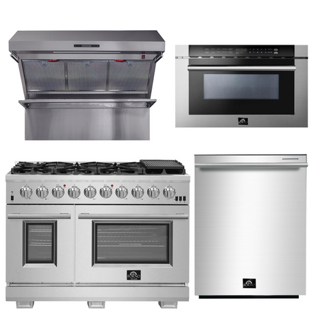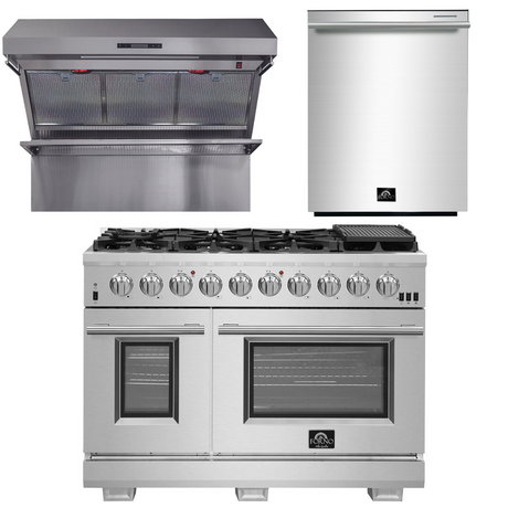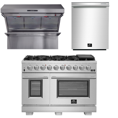 FORNO Appliance Package - 48 Inch Gas Range, Wall Mount Range Hood, Dishwasher, AP-FFSGS6244-48-2