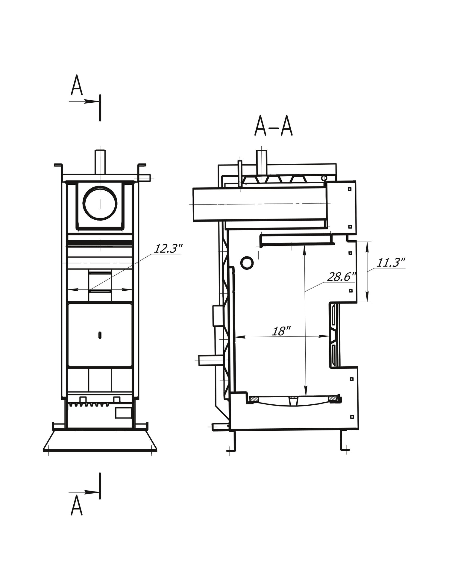 PRO Boilers advantages are the large fuel loading chamber and a thermostatic regulation of air inlet damper. The boiler burns clean complete combustion and extracts the maximum amount of heat with a guaranteed efficiency of 85%. The boiler is also ready to add in future a fan and controller module.