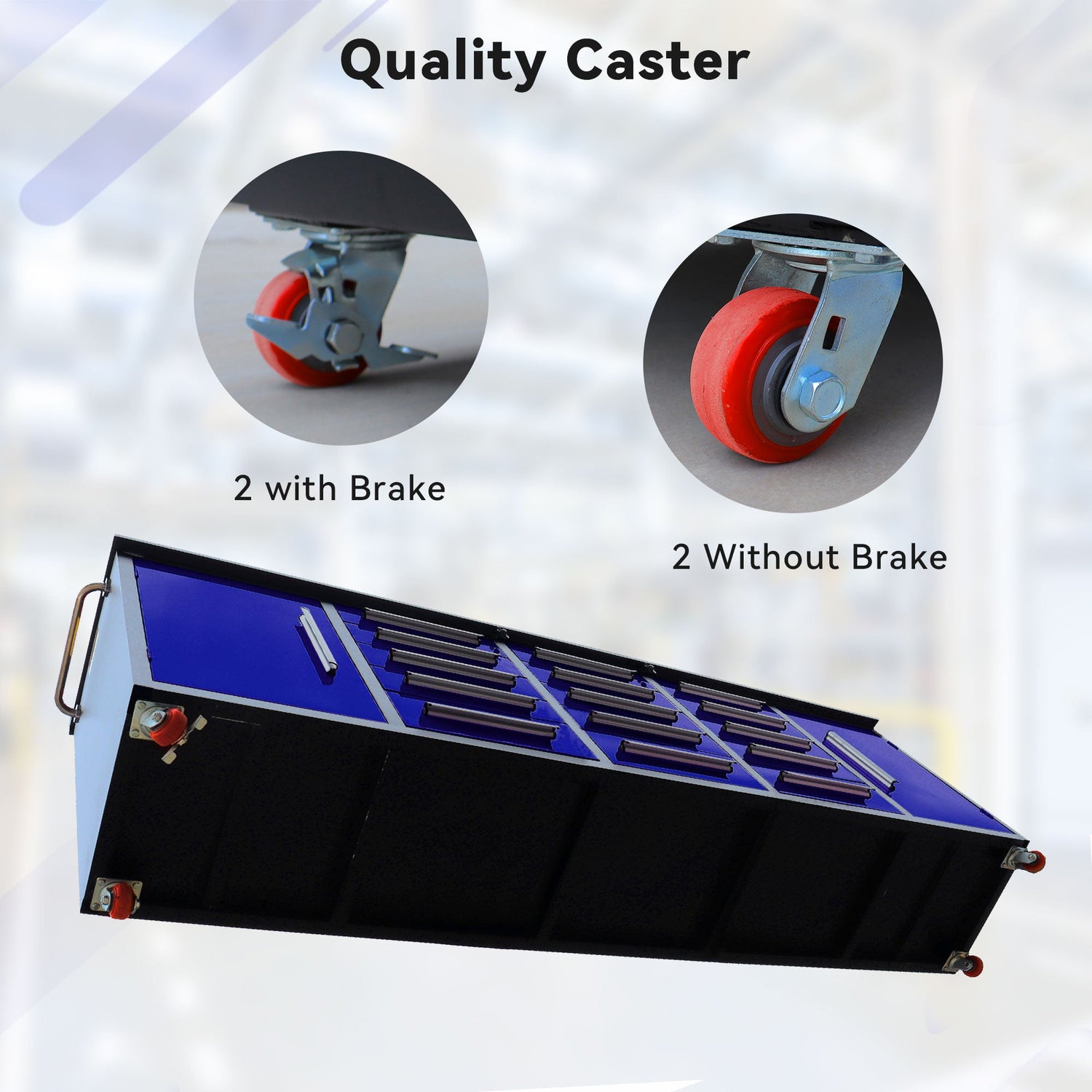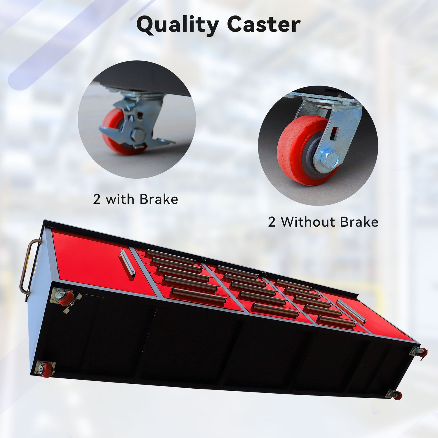 This 10ft Storage Workbench features 15 spacious drawers with a desktop capacity of 1,653 lbs and drawer capacities up to 99 lbs each. With durable steel construction, plywood-lined desktop, and plastic powder coating, it’s designed for strength and mobility, enhanced by wheels and dual handles for easy maneuverability.