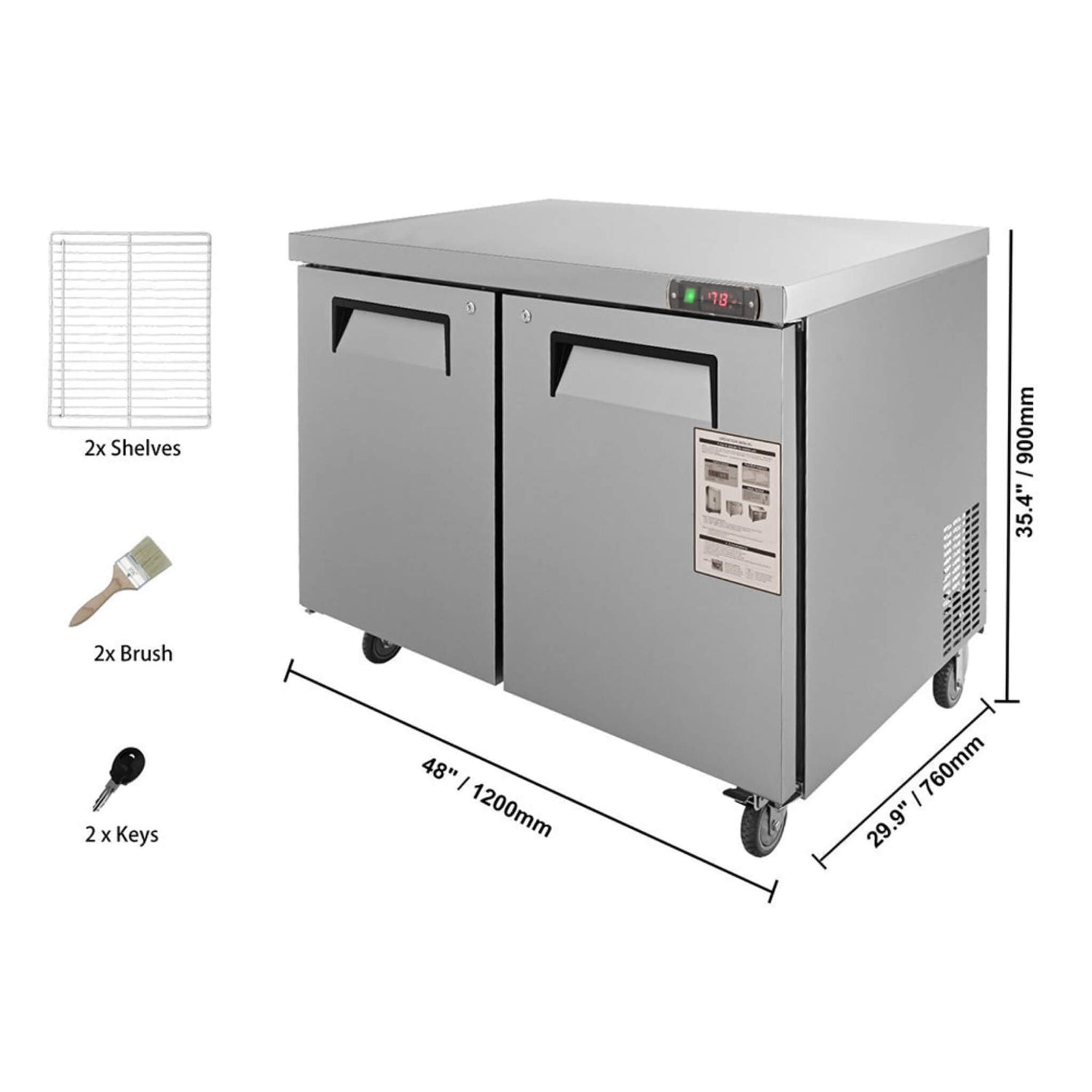 Invest in total convenience and performance in one piece with our amazing 12.9 Cu.Ft 2 Door Commercial Stainless Steel Worktop Undercounter Refrigerator, 48"!