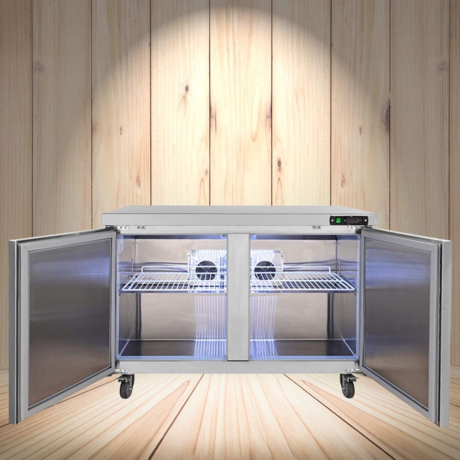 Experience professional-grade refrigeration with our 48" 2 Door Commercial Stainless Steel Worktop Undercounter Refrigerator. With a whopping 12.85 cubic feet of capacity, this commercial worktop compressor provides an array of features and benefits to meet the needs of any busy kitchen or restaurant.