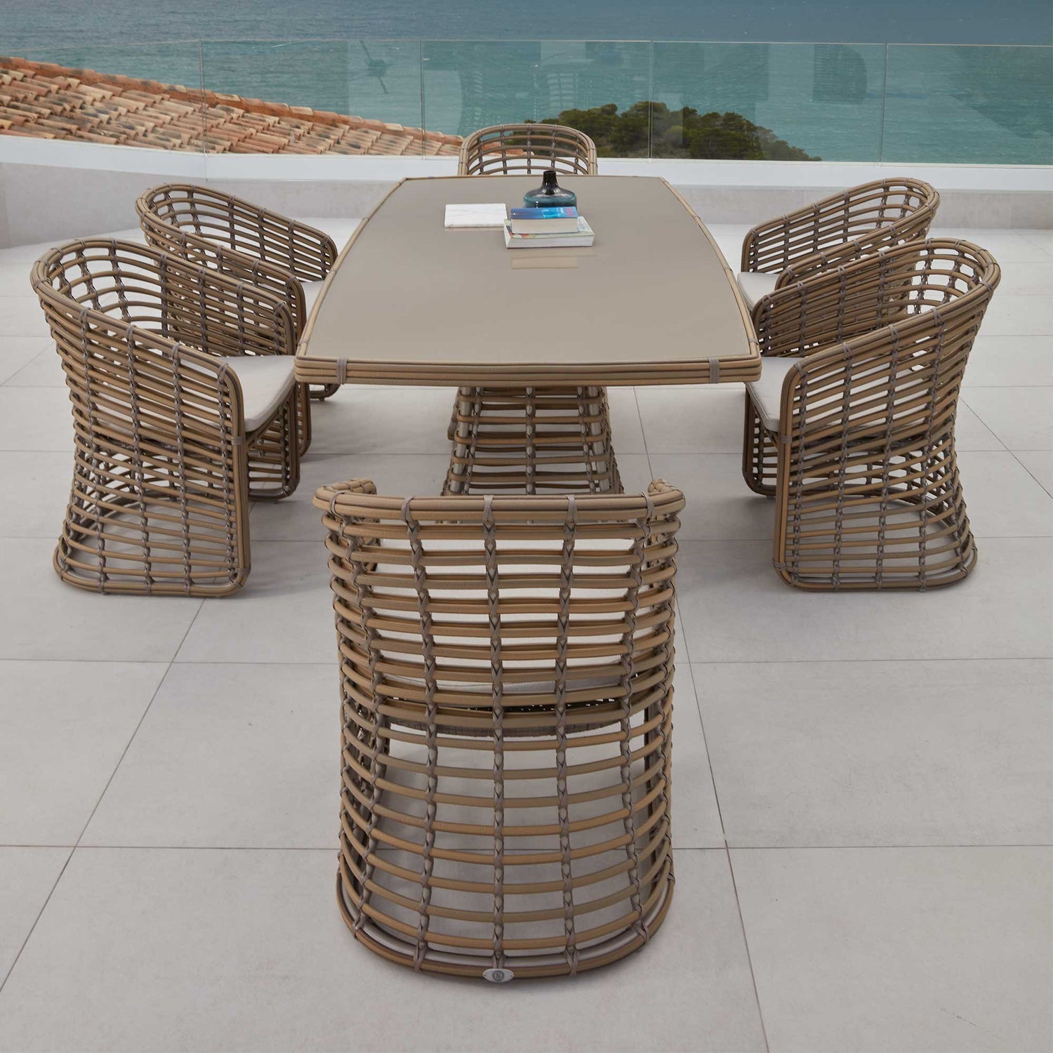 The Ruby 7-Piece Dining Set with a rectangular table is a standout choice for hosting unforgettable outdoor meals. Whether it’s a lively dinner party or a peaceful sunset gathering, this stylish set offers comfort and sophistication. Constructed to commercial standards with weather-resistant materials and Sunbrella cushions that can be customized to match your design vision.