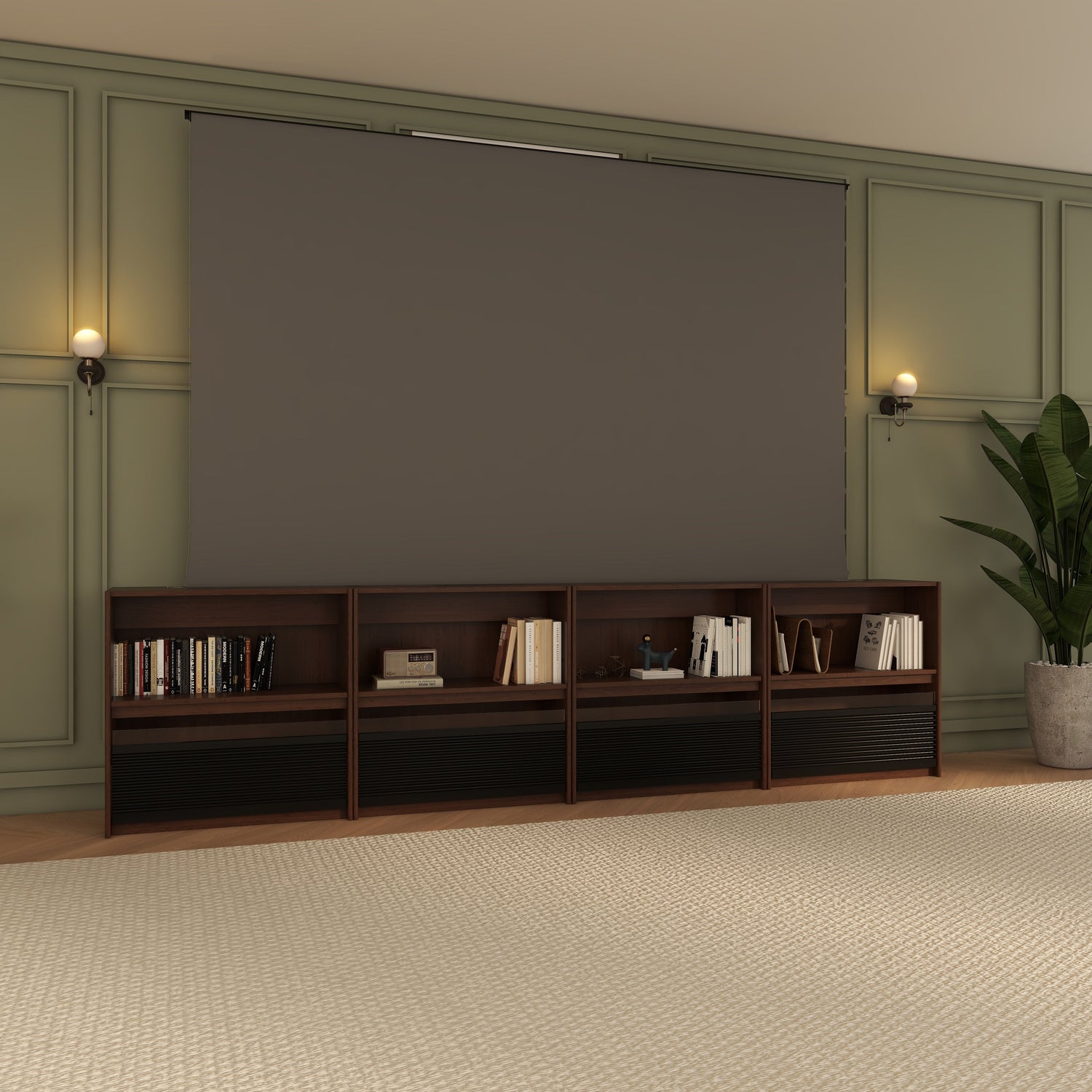 The VIVIDSTORM Nexus is the ultimate home theater solution, designed to seamlessly integrate a motorized projector screen with a high-end shelving unit. This innovative piece of furniture not only enhances your viewing experience but also elevates your living space with its sleek, modern design.