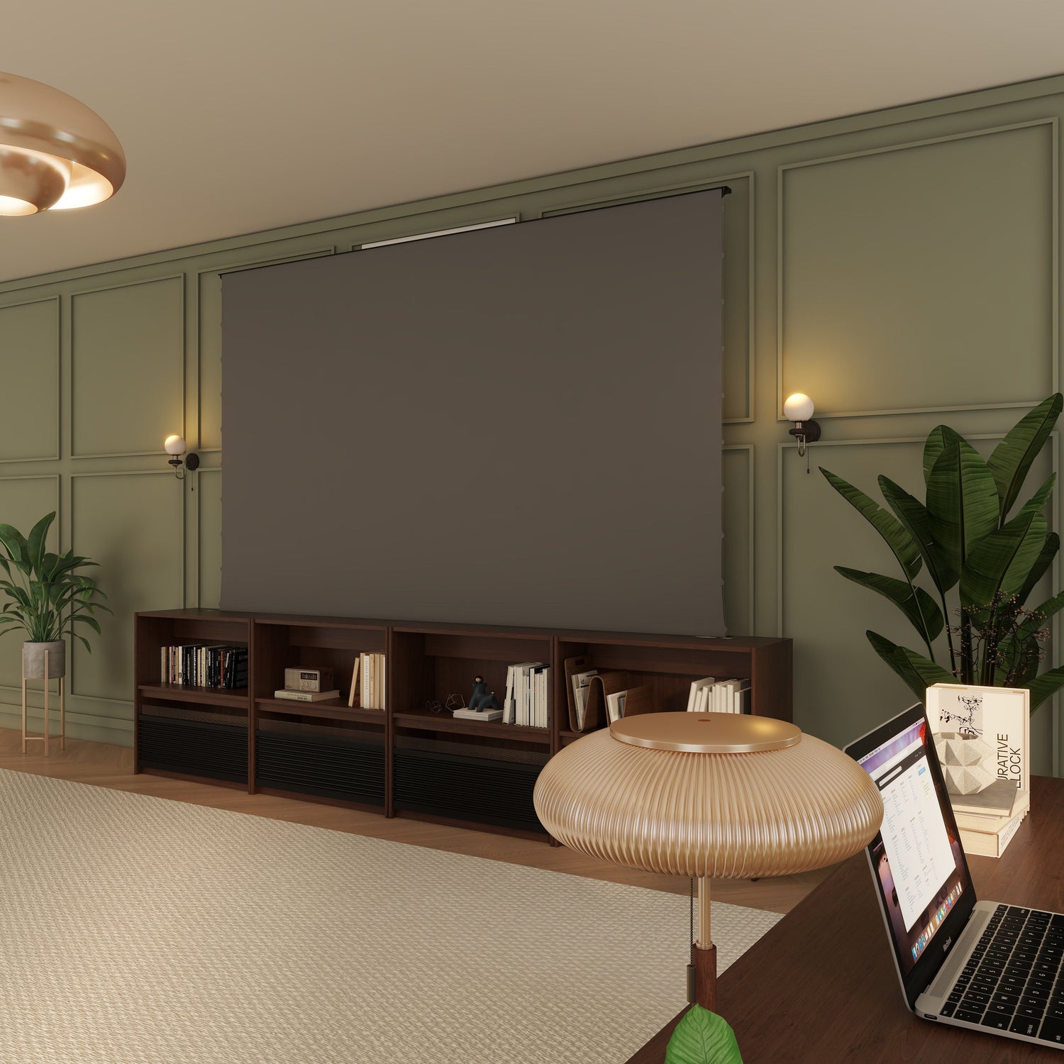 Space-Saving Design: The Nexus eliminates the need for traditional wall-mounted screens. Its sleek, integrated design allows you to store the projector screen within the unit itself, saving space and maintaining a clean, modern aesthetic in your home.
