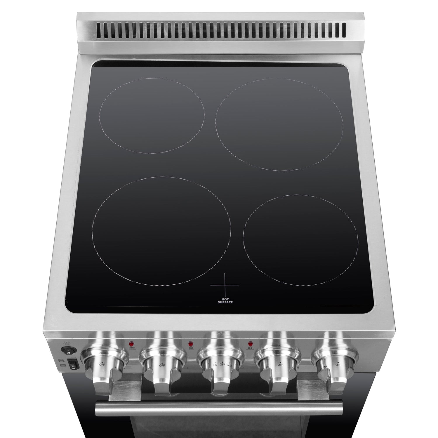 Introducing the Forno Lamazze Professional 20-Inch Electric Range, a powerful and stylish addition to your kitchen. With its 4 Radiant Elements, this stove-top boasts an impressive 6,000W capacity, ensuring quick and efficient cooking for all your culinary needs. The Ceramic Glass surface guarantees even heat distribution and smooth mobility for your cookware, making every dish a masterpiece.