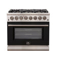 FORNO Capriasca 36" 5.36 cu. ft. Dual Fuel Range with 6 Italian Burners in Black, FFSGS6187-36BLK