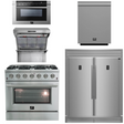 FORNO Package - 36 Inch Gas Range, Wall Mount Range Hood, Refrigerator, Microwave Drawer, Dishwasher, AP-FFSGS6244-36-8