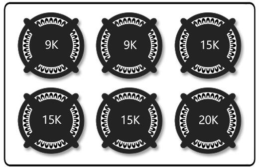 Back Left Output: 9000 Back Right Output: 15000 Front Right Output: 20000 Middle Back Output: 9000 Middle Front Ouput: 15000 |