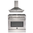 FORNO Appliance Package- 36 Inch Dual Fuel Range, Wall Mount Range Hood, AP-FFSGS6156-36-W