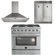 FORNO Appliance Package - 36 Inch Gas Range, Wall Mount Range Hood, 60 Inch Refrigerator, AP-FFSGS6244-36-W-4