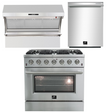 FORNO Appliance Package - 36 Inch Gas Range, Wall Mount Range Hood, Dishwasher, AP-FFSGS6244-36-2