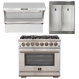 FORNO Appliance Package - 36 Inch Gas Burner/Electric Oven Pro Range, Wall Mount Range Hood, Refrigerator, AP-FFSGS6187-36-4