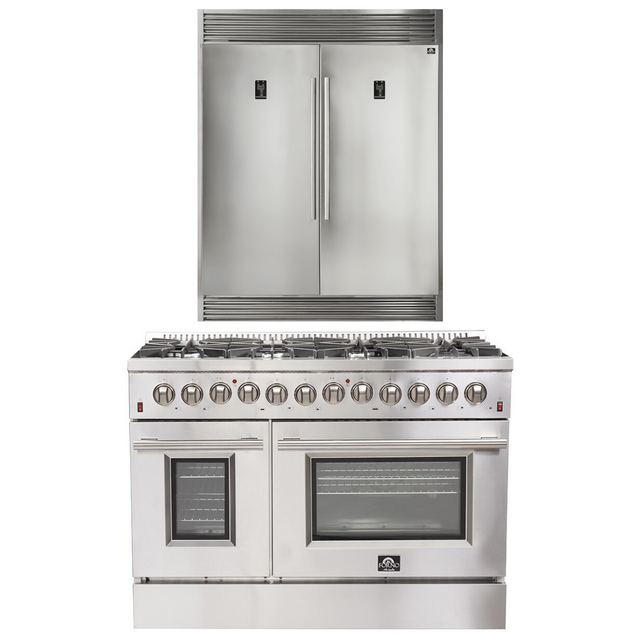 This Forno Kitchen appliance package is complete with a Professional 48" Range and 60" Refrigerator.