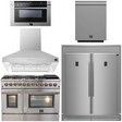 FORNO Appliance Package - 48" Gas Burner, Electric Oven Range, Range Hood, 60" Refrigerator, Dishwasher, Microwave Drawer, AP-FFSGS6156-48-17