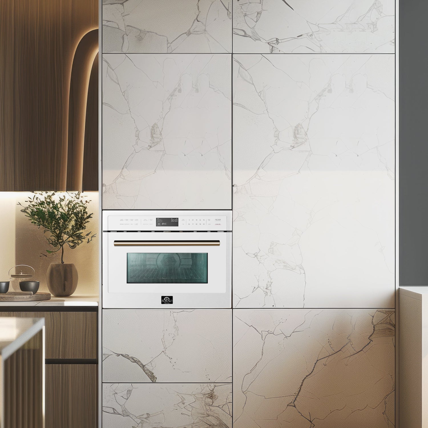 FORNO Espresso Oliena 24" 1.6 cu. ft. Built-In Microwave Oven in White with Antique Brass Handles, FMWDR3093-24WHT