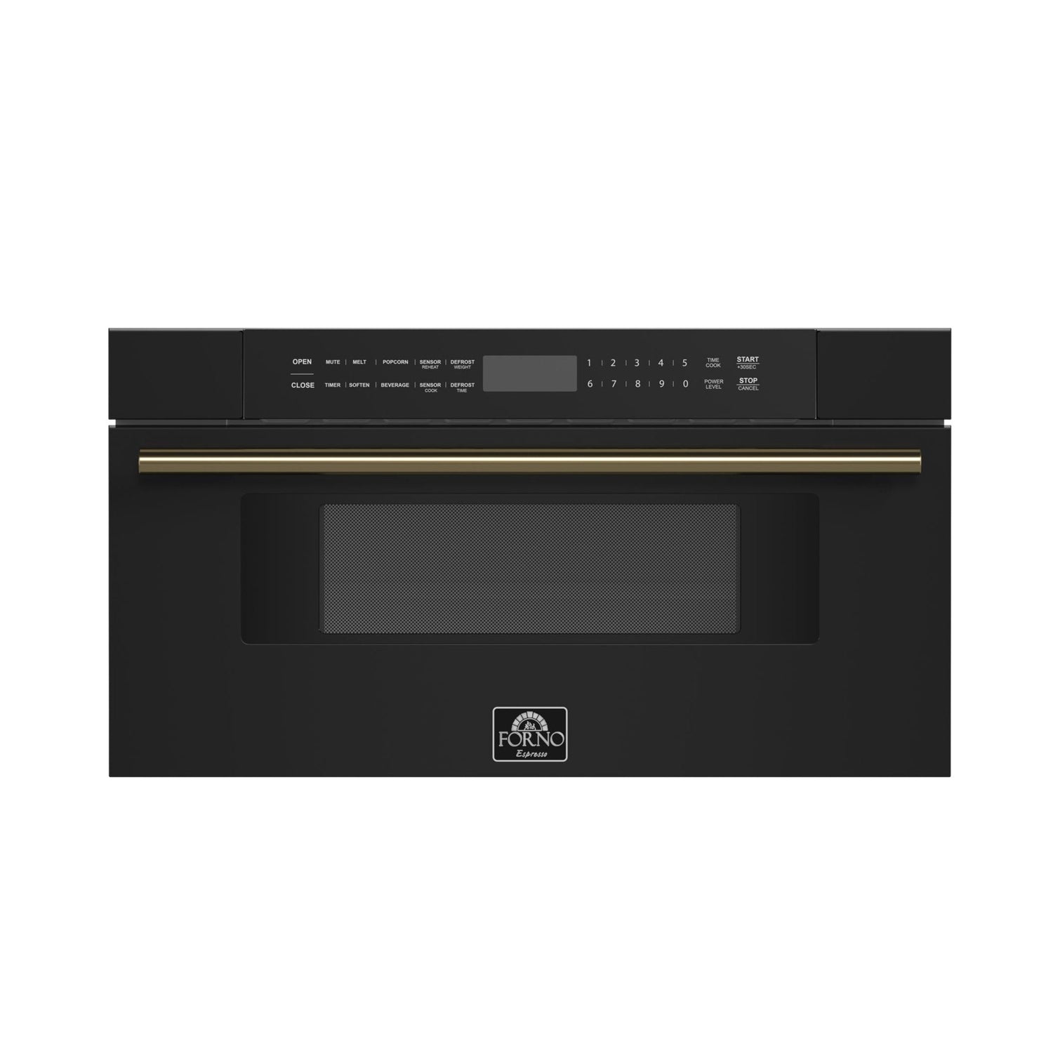 FORNO Espresso Capoliveri 30" 1.2 cu. ft. Built-In Microwave Drawer in Black with Antique Brass Handles, FMWDR3000-30BLK