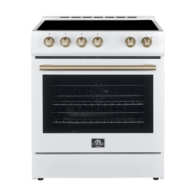 FORNO Espresso Leonardo 30" 5 cu. ft. Electric Range in White with Antique Brass Handles, FFSEL6012-30WHT