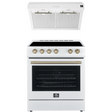 Forno Espresso 30" Electric Range in White with Antique Brass Handles, FFSEL6012-30WHT