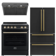 FORNO Espresso Package - 30" Electric Range, Range Hood and Refrigerator in Black with Antique Brass Handles
