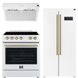 FORNO Espresso Package - 30" Electric Range, Range Hood and Refrigerator in White with Antique Brass Handles