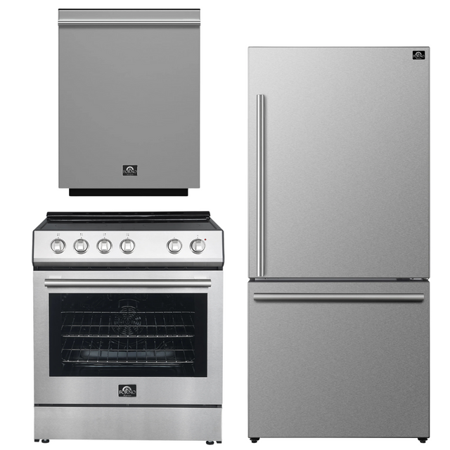 FORNO Espresso Package - 30" Electric Range, Refrigerator and Dishwasher in Stainless Steel with Silver Handles