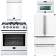 FORNO Espresso Package - 30" Gas Range, 36" Refrigerator with Ice Maker, Dishwasher and 24" Microwave Oven in White with Silver Accents
