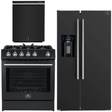 FORNO Espresso Package - 30" Gas Range, 36" Refrigerator with Water and Ice Dispenser and Dishwasher in Black with Silver Accents