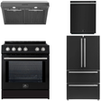 FORNO Espresso Package - 30" Induction Range, Range Hood, 36" Refrigerator with Ice Maker and Dishwasher in Black with Silver Handles