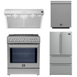 FORNO Espresso Package - 30" Induction Range, Range Hood, 36" Refrigerator with Ice Maker and Dishwasher in Stainless Steel