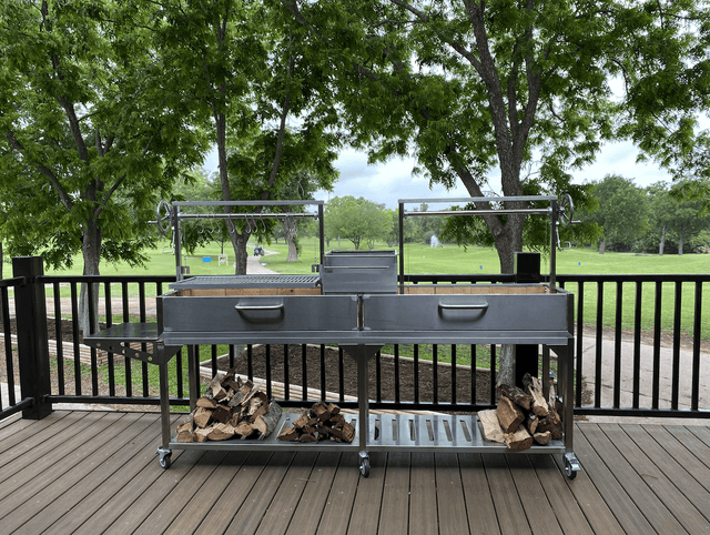The BBQ04SS Double Argentine Santa Maria Grill delivers twice the grilling space and endless open-fire cooking possibilities. Designed for those who want to master traditional gaucho-style grilling, this dual-zone model is fully constructed from 304 stainless steel and includes two large grilling areas, a firebox, meat hooks, and an interchangeable griddle. Whether you're slow-cooking a whole pig or searing steaks, this grill empowers you to manage multiple heat zones and techniques at once. It also comes with a shovel, poker, and custom cover.