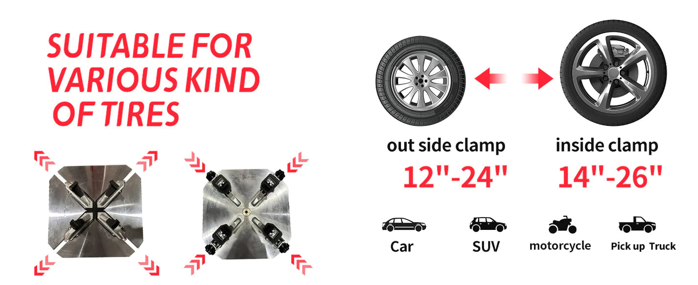 • Clamping Range: Outside 12"–24", Inside 14"–26"