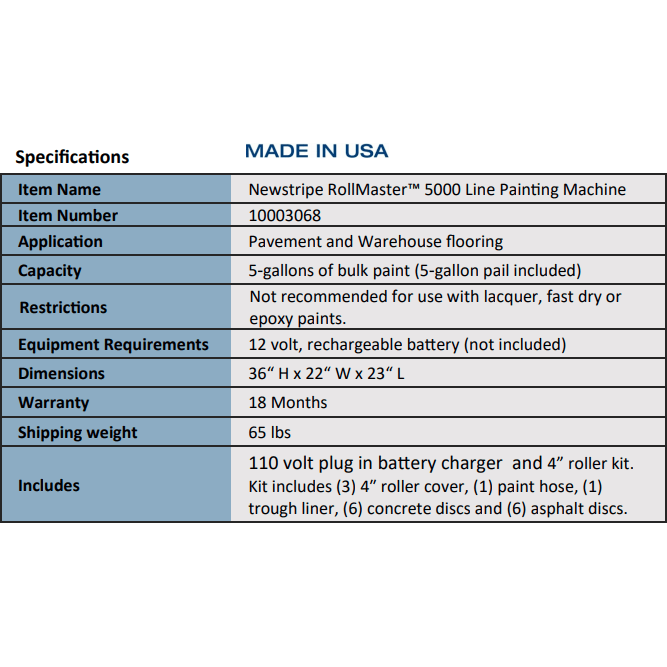18-Month Warranty – Proudly made in the USA, the RollMaster 5000 is backed by our Newstripe Equipment Protection Plan, offering a full 18-month warranty for peace of mind.