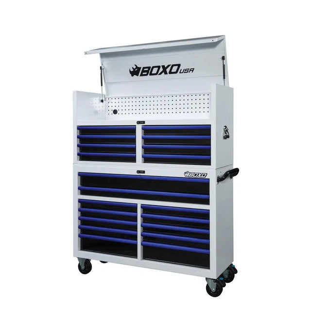 Pro Series | 53" 20-Drawer Rolling Tool Box | White and Blue is backordered and will ship as soon as it is back in stock.