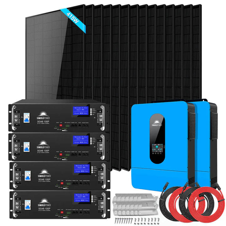 SUNGOLD POWER Off-Grid Solar Kit 13000W 48VDC 120V/240V LifePo4 20.48KWH Lithium Battery 14 X 415 Watts Solar Panels SGR-13KM